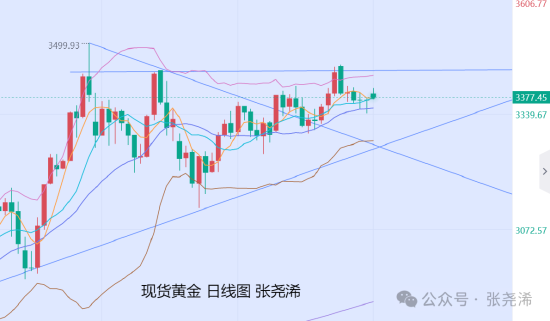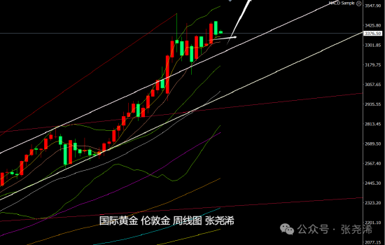 周图:金价上周虽回落走软,但近几周整体也是震荡上行发展,且也运行在5-10周均线支撑上方保持上行的前景发展,再加上布林带也倾向上行,故此,多头仍具看涨前景,下方5-10周均线支撑,也是可再度入场看涨的机会。依然有望等待再度上探3500美元乃至3545美元。