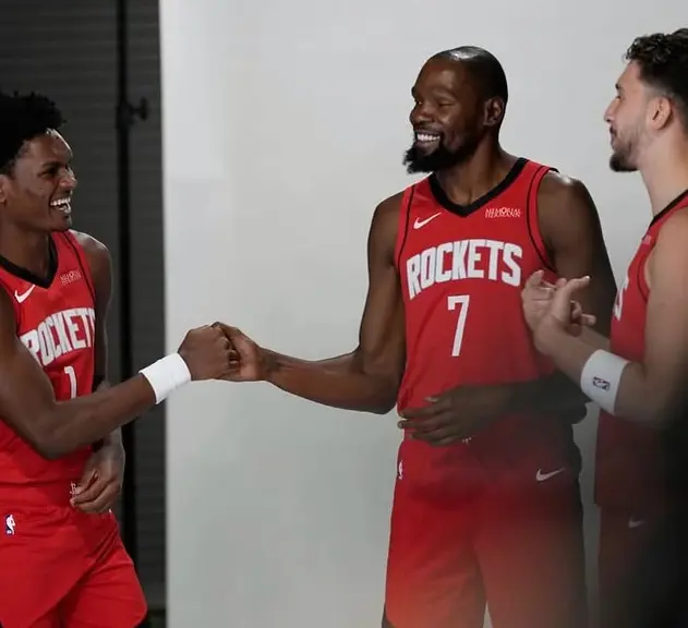 今年休赛期,杜兰特在一笔七方大交易中被太阳交易到火箭,在火箭媒体日现场,杜兰特来到丰田中心球馆,身穿火箭7号球衣拍摄定妆照,期间杜兰特、申京和阿门合影时,杜兰特在谈笑间把C位让给了阿门-汤普森,如此一幕引热议,美媒直呼这一幕一定会被铭记。